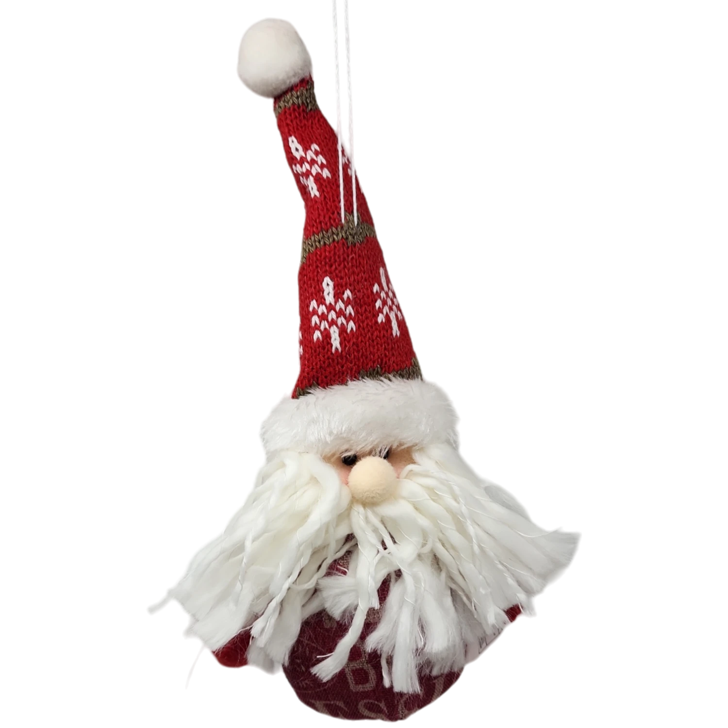 Adorable santa ornament. His plush body is kept warm with a knit hat and amazingly fluffy beard.