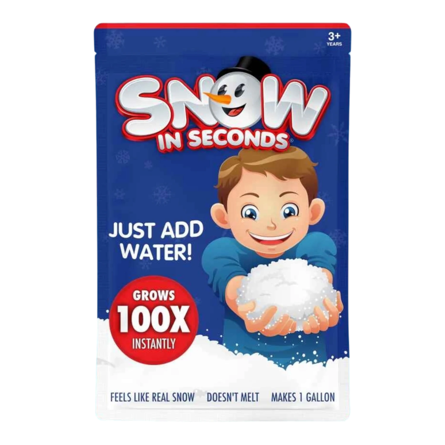 Perfect for stocking stuffers! One pouch makes one gallon of snow, enough to brighten anyone’s day!